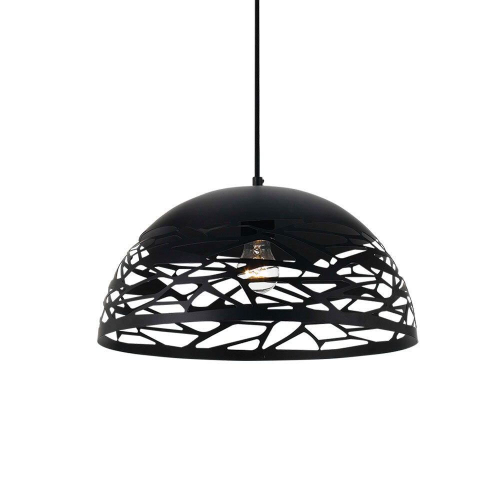 FARINA Pendant 40cm Dome with Deco Pattern. Matt Black E27 25w Max