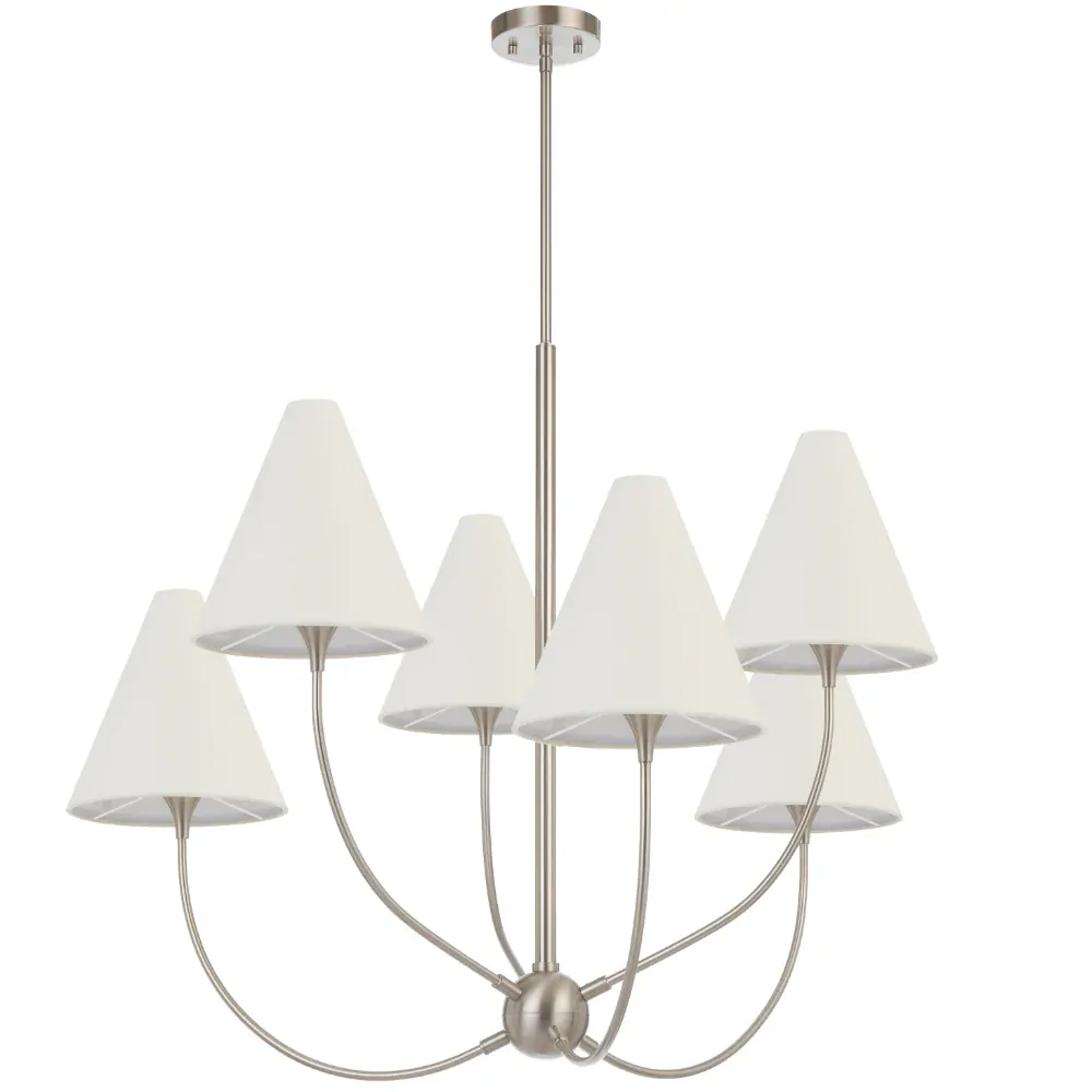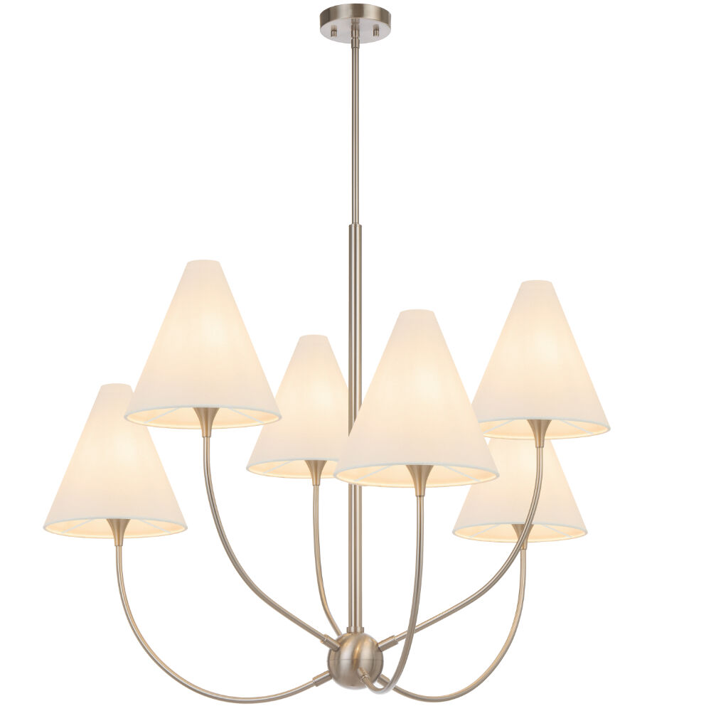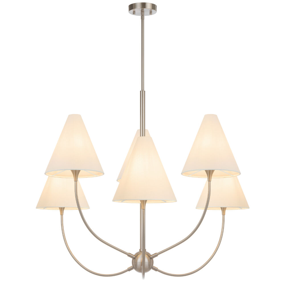 The nickel finish delivers a clean, modern look that suits a wide range of interior styles, including contemporary, industrial and modern classic homes. Its symmetrical form and open structure allow light to spread evenly throughout the space, making it ideal for positioning over dining tables or in rooms with higher ceilings.