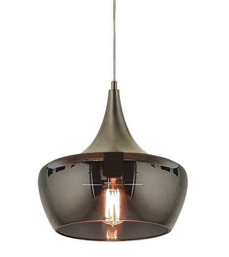 LANDY 30 PENDANT Nickel with Smoke Glass E27 40w Max