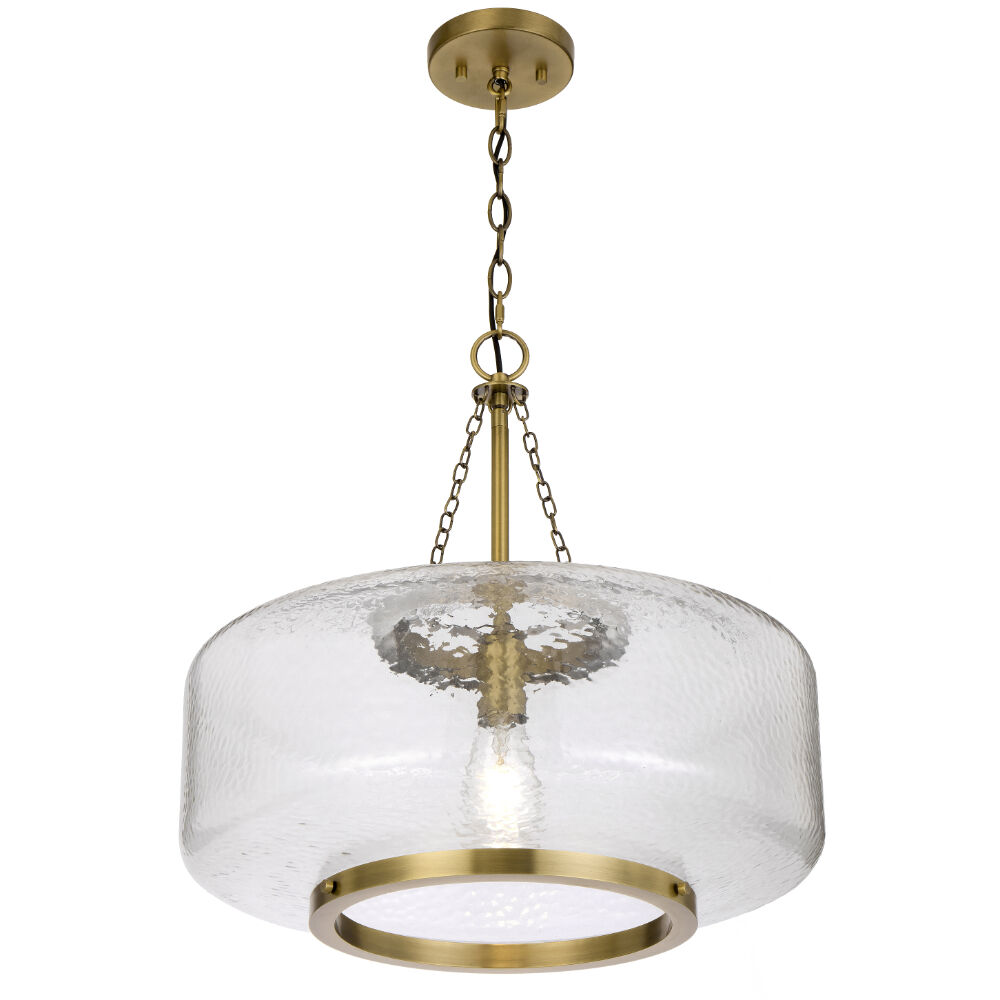 The Mornet pendant light showcases a bold, contemporary silhouette with a wide, drum-shaped shade crafted from textured glass and framed in elegant gold-finished iron. Suspended by a 2-metre adjustable chain, it offers versatile height customisation. This striking fixture blends modern glamour with subtle industrial elements, making it ideal for statement lighting in dining rooms, kitchens, or living areas.