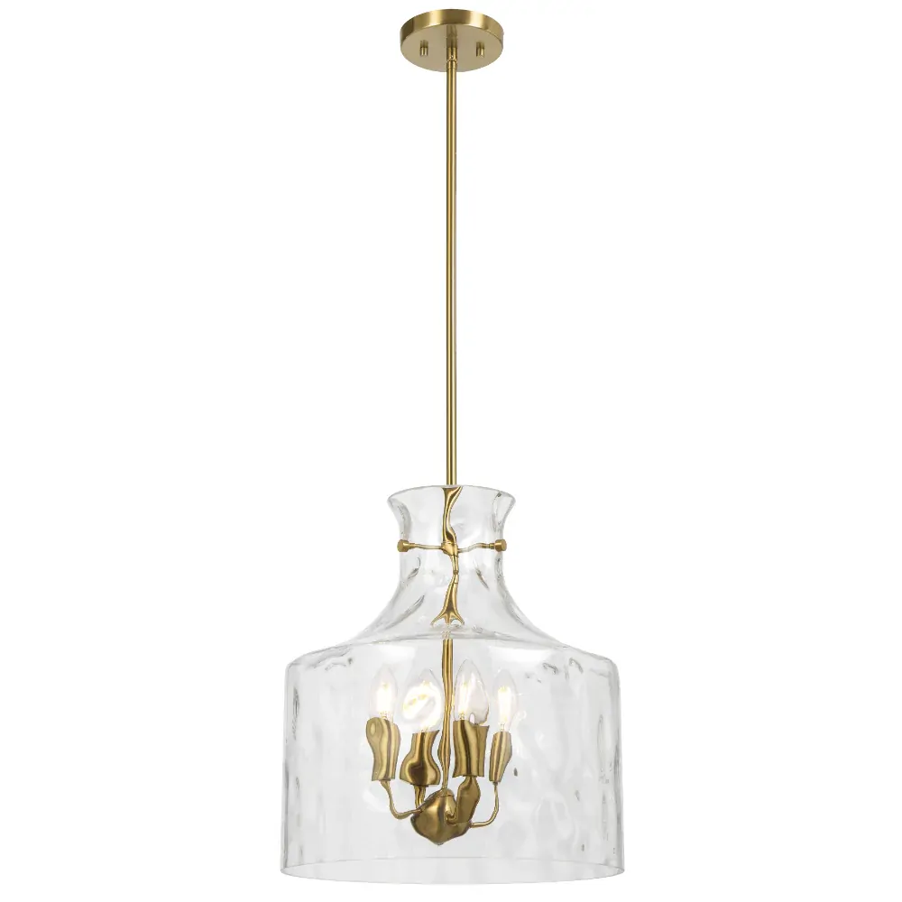 Telbix Perron 4 Light Pendant Antique Gold Textured Glass