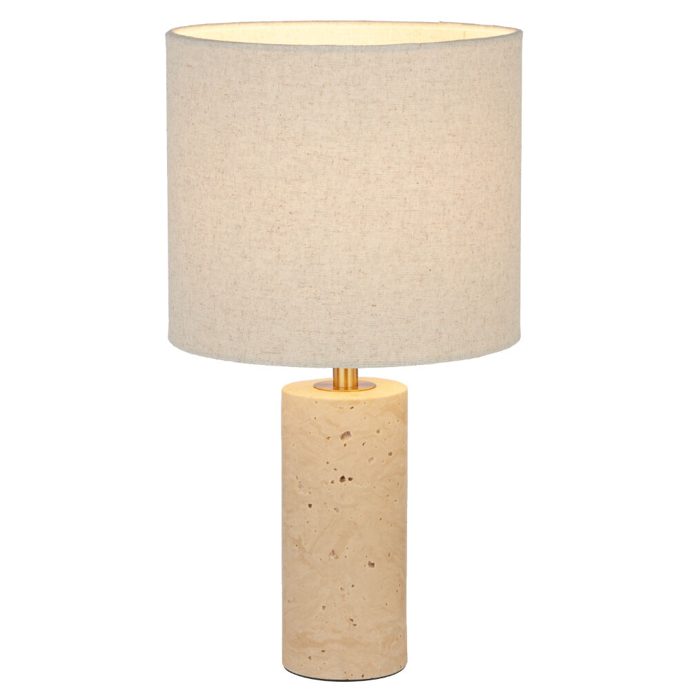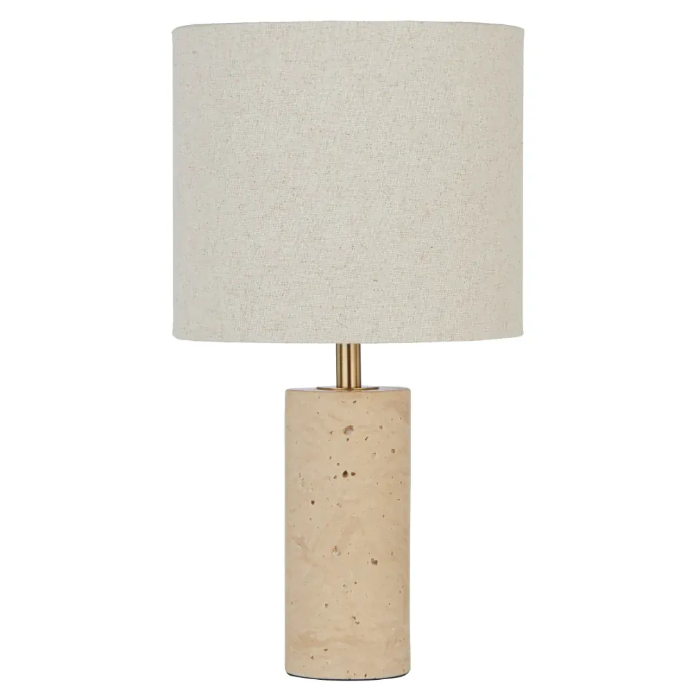 Telbix Polano Table Lamp Small Beige Travertine and Ivory Fabric