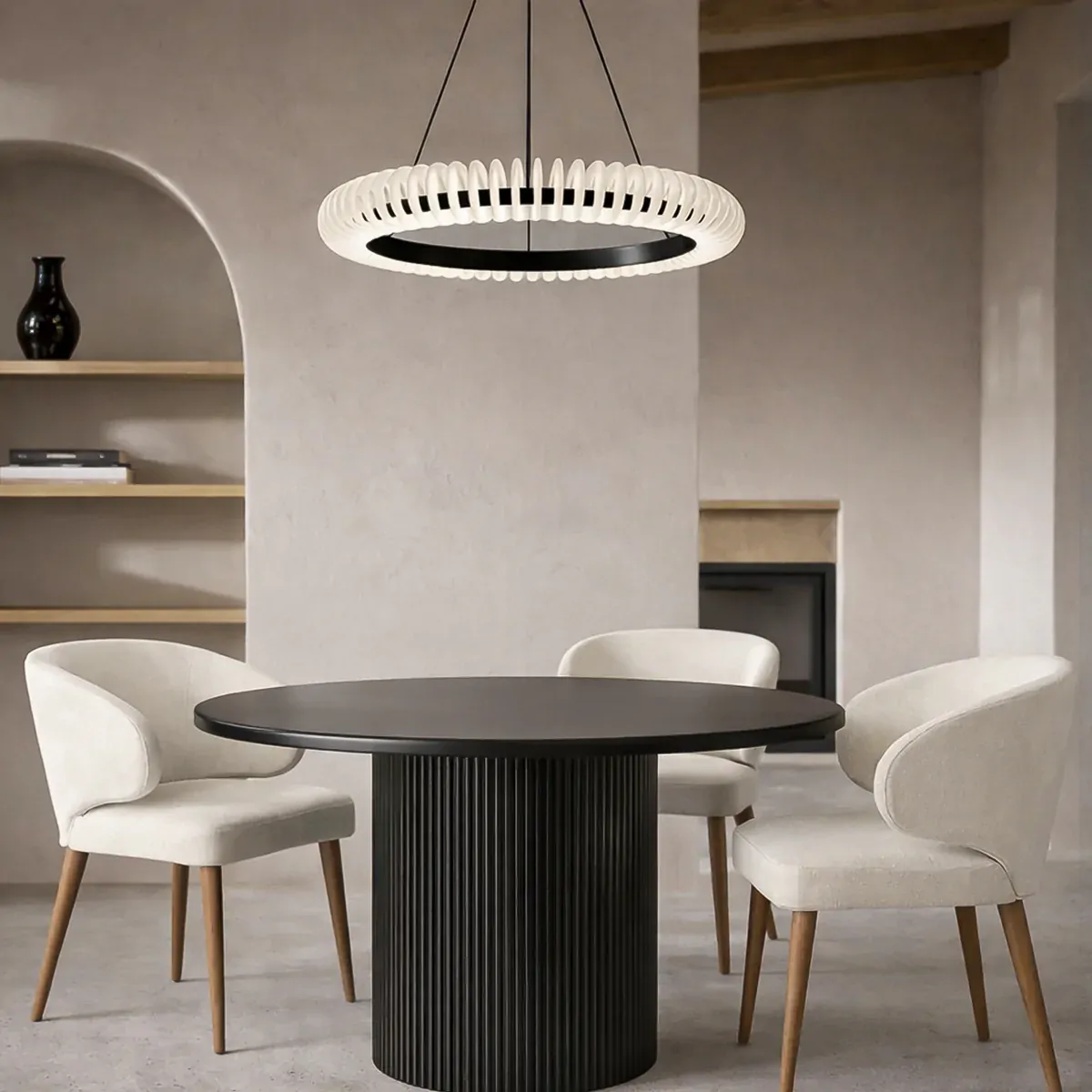 With a 60cm diameter design, the pendant produces up to 3388 lumens of bright yet comfortable light. The built-in 3CCT functionality allows you to select between warm white, neutral white or cool white lighting (3000K–5000K), enabling easy adjustment to suit different interior environments and moods.
