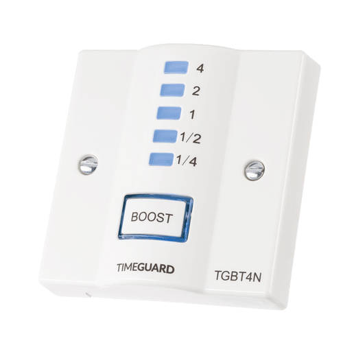The EB11 Boost Switch is a simple manual count down timer. Each time you want to use the rail you simply press the boost button for the number of time increments required. One press will do 15 minutes, two presses will do 30 minutes and so on through the remaining increments of 1, 2 and 4 hours. The blue light will shine to indicate the time the rail will be on for and each increment will flash before it finishes. Once the countdown is complete the rail will switch off, ready for use again next time.