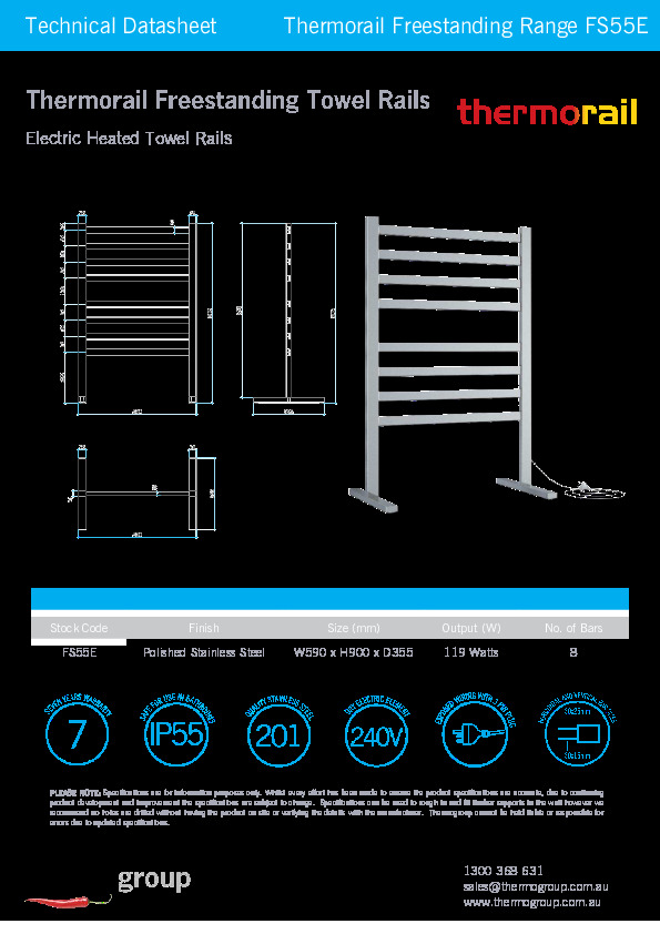 Heated Towel Rails are an affordable luxury for every bathroom for warming and drying your towels. The FS55E Heated Towel Rail is a free-standing option which is designed to be plugged into powerpoint in any room to bring the luxury of a warm dry towel.