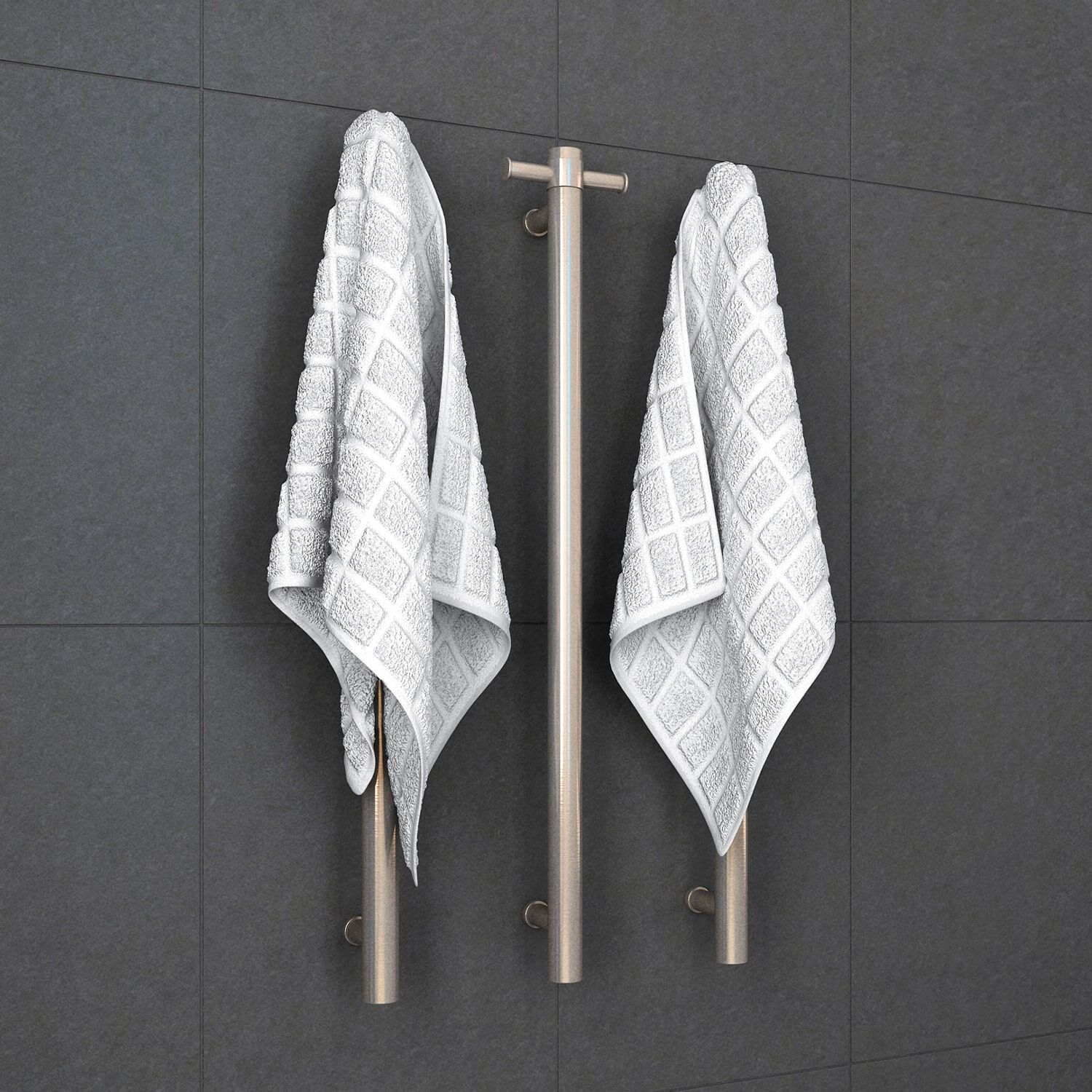 All Thermorail vertical heated towel rails include an optional towel hook which can be fitted on the rail at the time of install. This hook allows for the towel to be more easily hung over the vertical rail. Whilst the vertical rail will assist in drying your towel, it does have less surface contact then a ladder rail and therefore will be less effective in drying and warming your towel than a ladder.