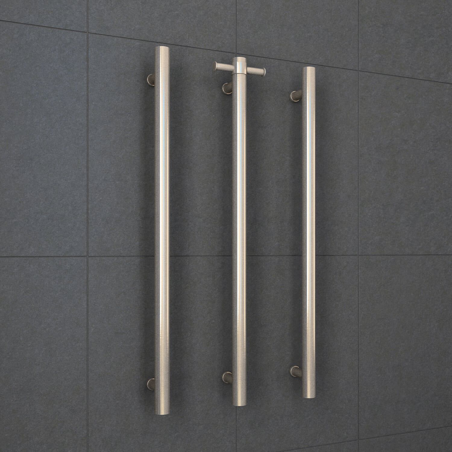 Thermorail VS900HBN Brushed Nickel Straight Round Vertical Single Heated Towel Rail