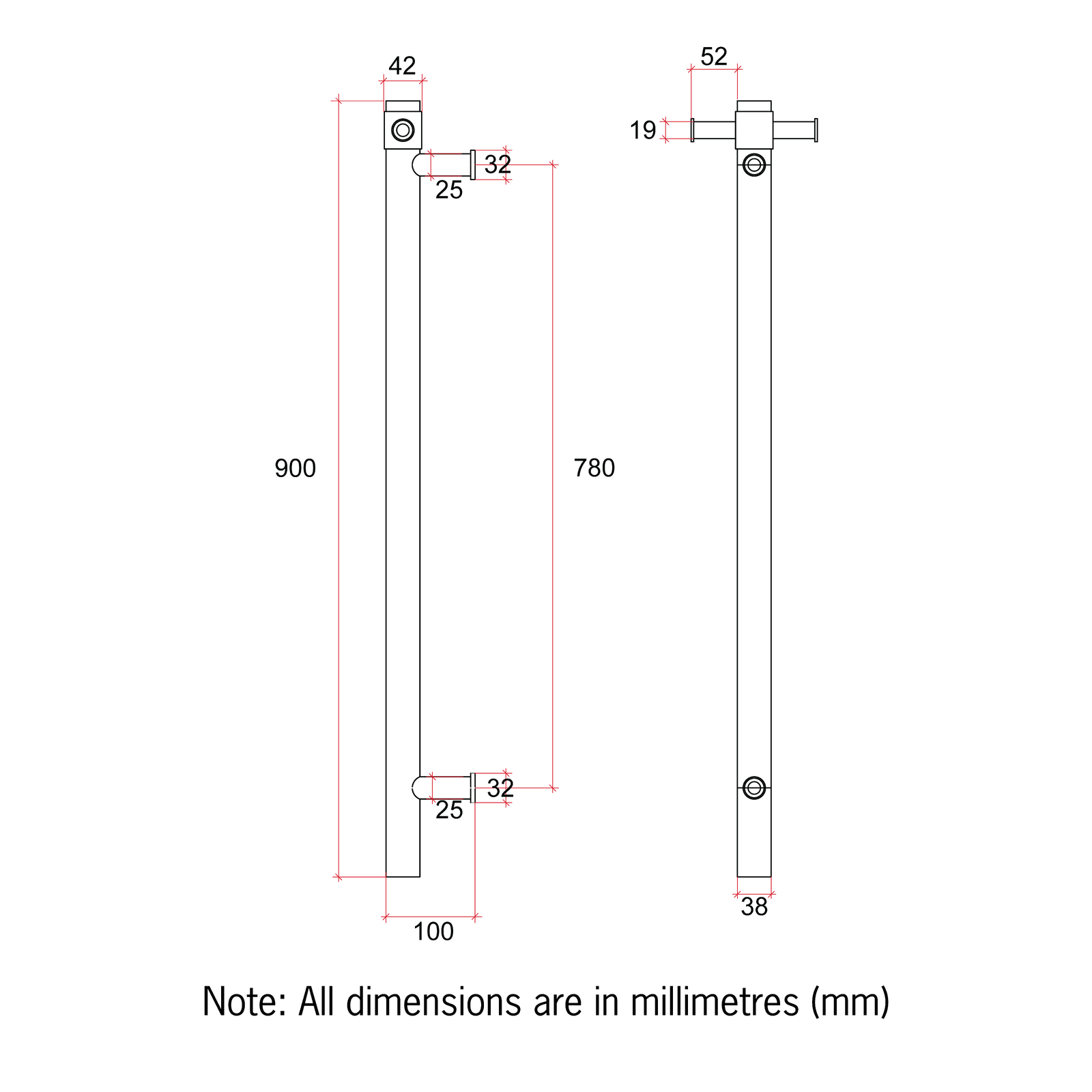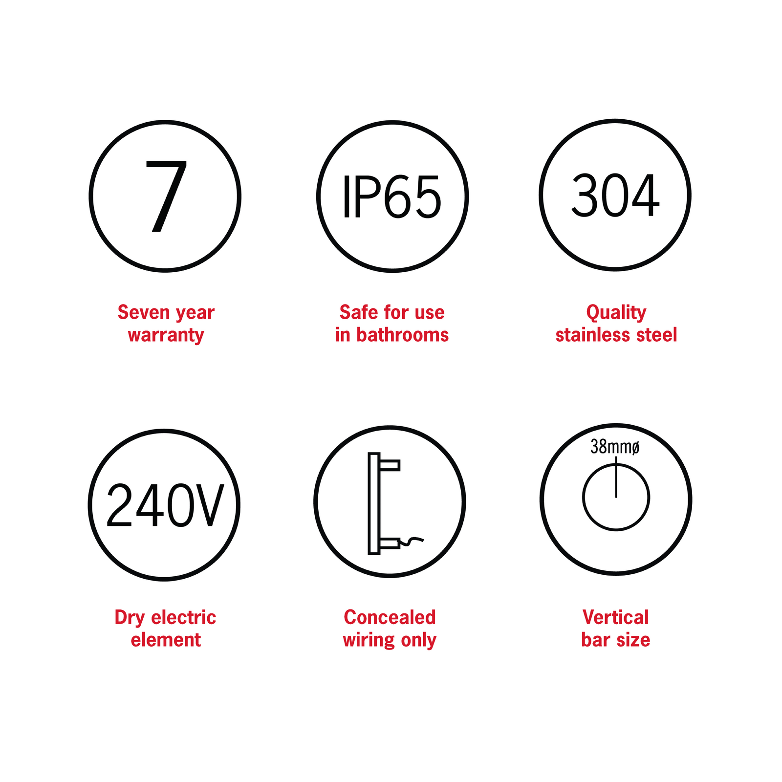 All Thermorail vertical heated towel rails include an optional towel hook which can be fitted on the rail at the time of install. This hook allows for the towel to be more easily hung over the vertical rail. Whilst the vertical rail will assist in drying your towel, it does have less surface contact than a ladder rail and therefore will be less effective in drying and warming your towel than a ladder.