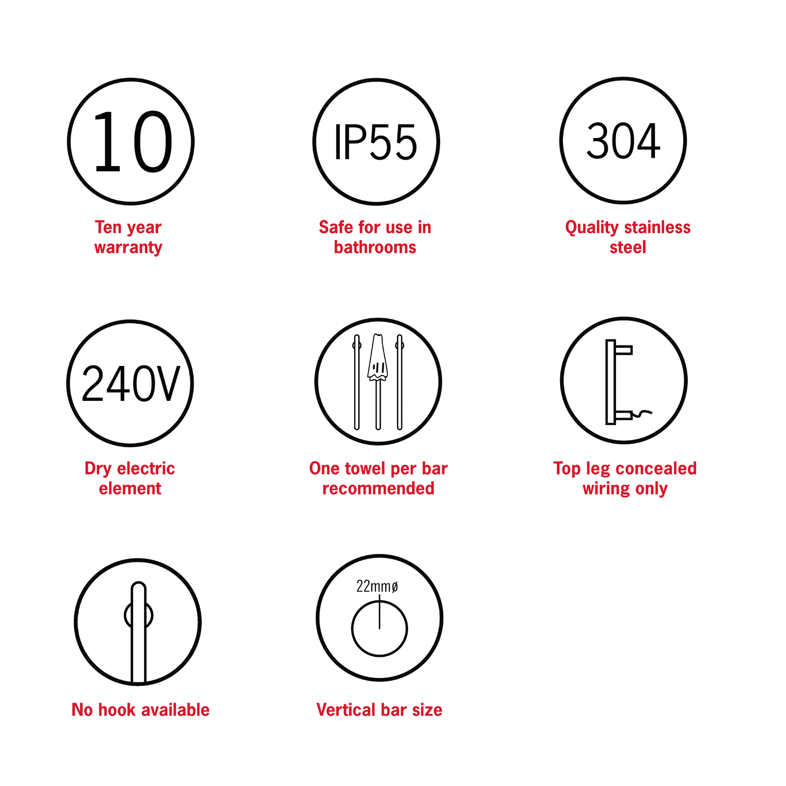 A Heated Towel Rail is an affordable luxury for every bathroom. The Thermorail VT Vertical Heated Towel Rails offer a stunning design feature for the bathroom, featuring a slimline design with a stylish mount. Along with the stylish design, the rails are designed to help dry your towel and create a design statement in your bathroom, particularly with limited wall space. The matt black finish of the VTH900B matches perfectly in with your black tapware.