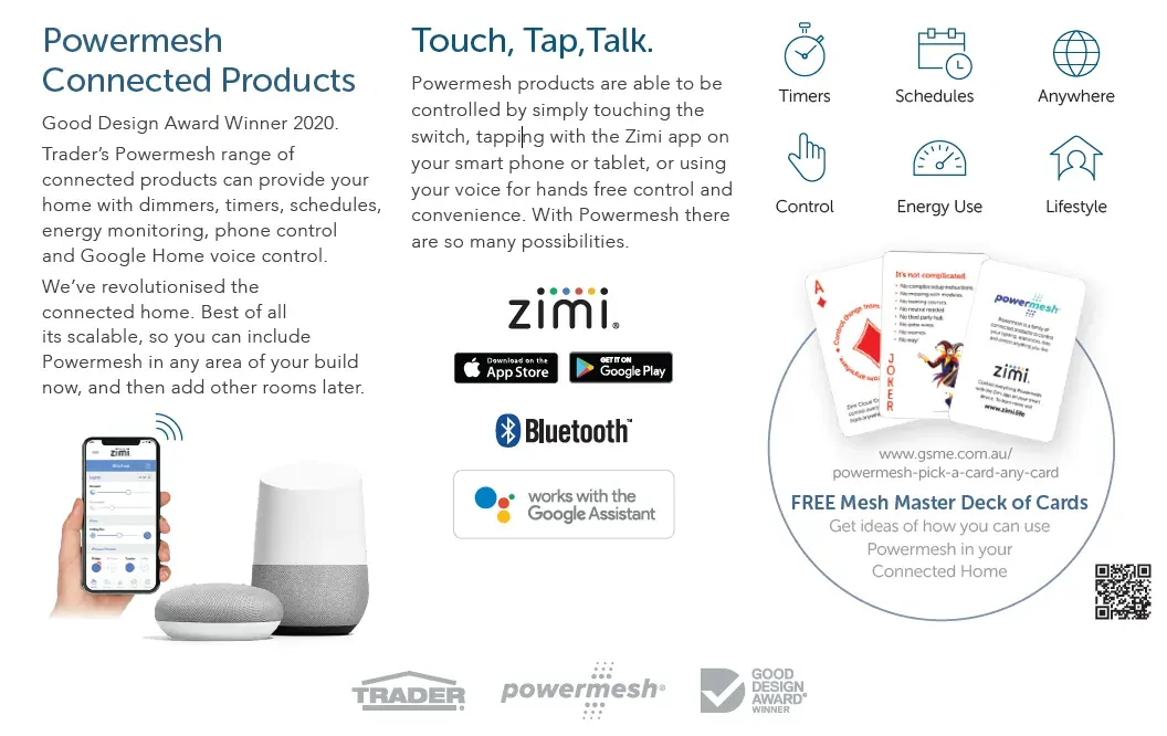 Trader’s Powermesh range brings next-level control to your home. With dimming, timers, scheduling, energy monitoring, phone app control, and Google Home voice integration, Powermesh makes smart living simple.