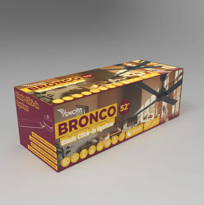 The Vencha Bronco 52" DC Ceiling Fan in Black is designed for both performance and style. Its sleek, modern look blends seamlessly into a wide range of interiors, while the advanced DC motor technology ensures powerful airflow with whisper-quiet operation and energy efficiency.