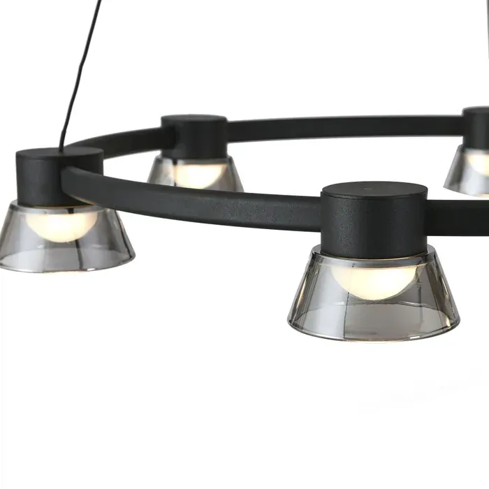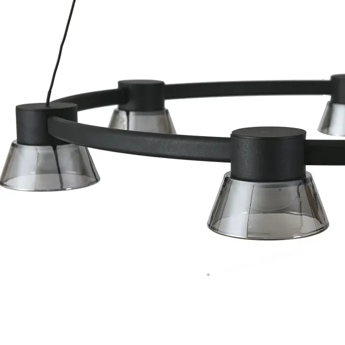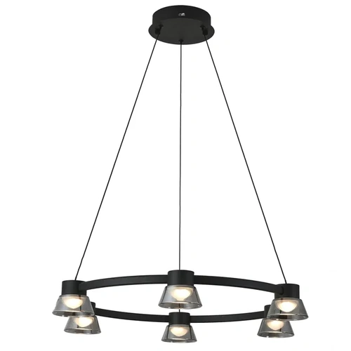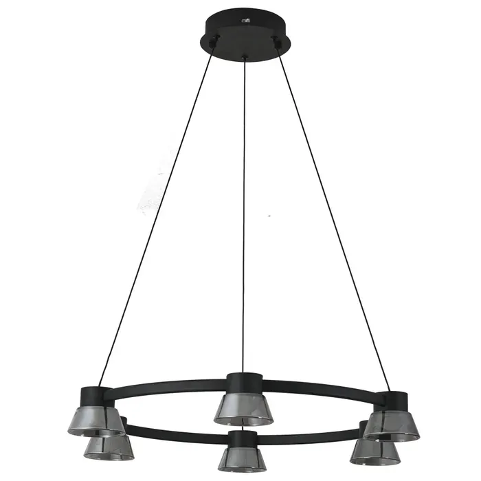 Modern, bold, and beautifully balanced. The Circular 6-Light Black Pendant features a sleek black metal frame suspended by fine cables, forming a stylish ring fitted with six evenly spaced lights.