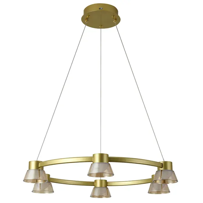 Elegant, modern, and full of character. The Circular 6-Light Brass Pendant features a brushed brass frame suspended gracefully by fine cables, forming a stylish ring fitted with six evenly spaced lights.