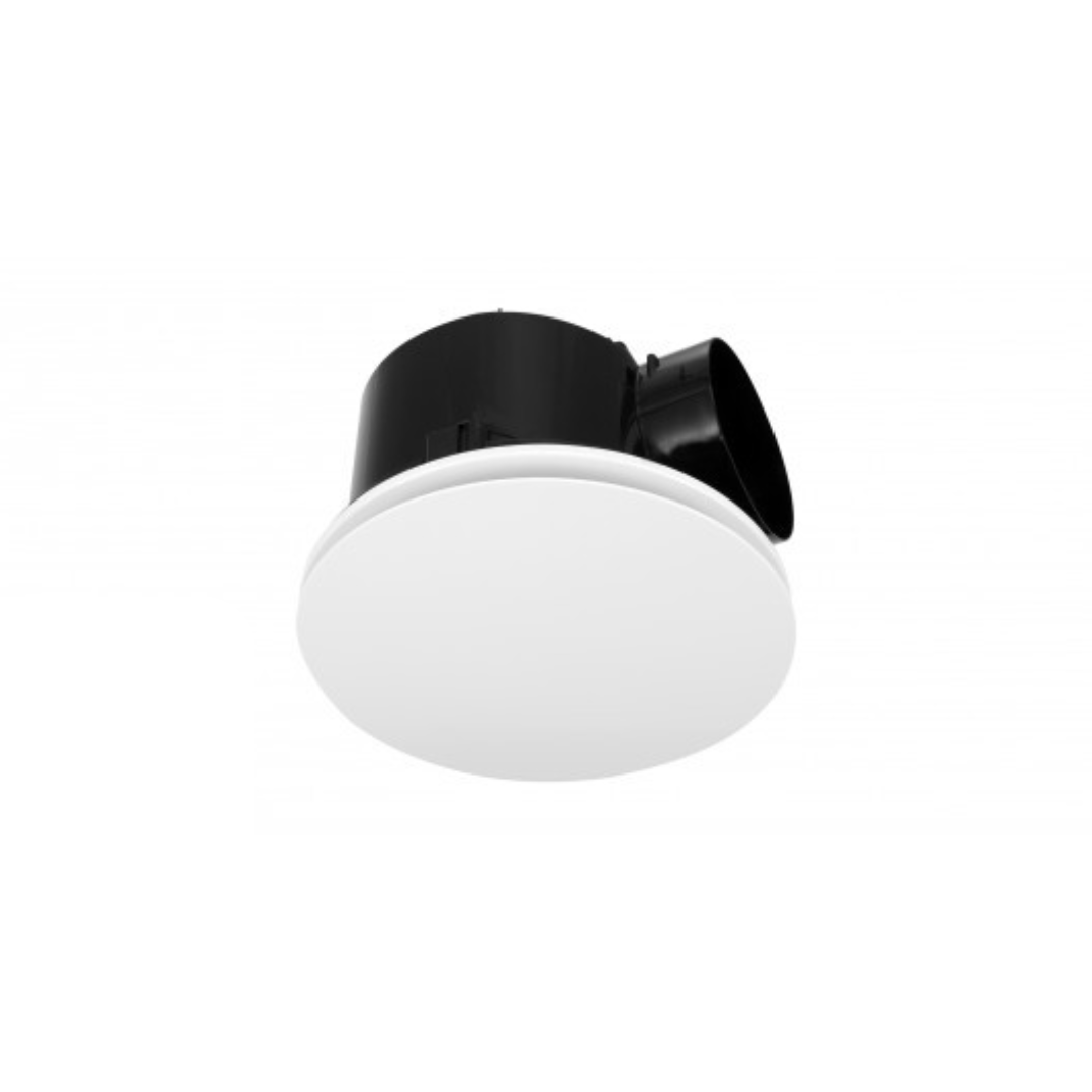 High performance Airbus 200 white, round side ducted exhaust fan engineered to maintain high airflow over longer duct runs. Engineered for superior airflow over long duct runs, this high-performance exhaust fan efficiently removes moisture, odors, and stale air. Its back-draft stopper enhances efficiency, while the plug-and-lead setup allows for quick installation. With a customizable fascia, it’s the perfect blend of power, convenience, and style.